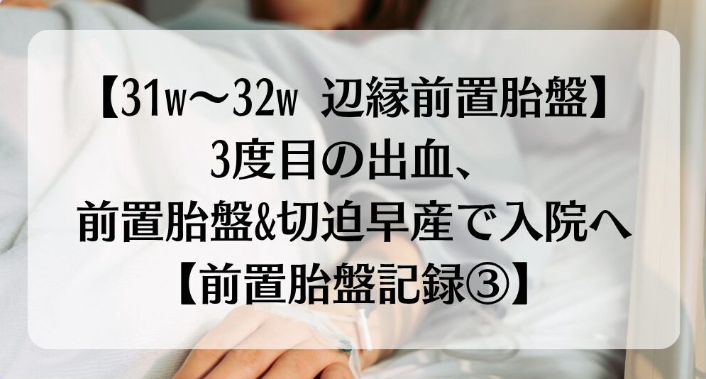 - 32w 3度目の出血(鮮血)、前置胎盤と切迫早産の診断で入院へ