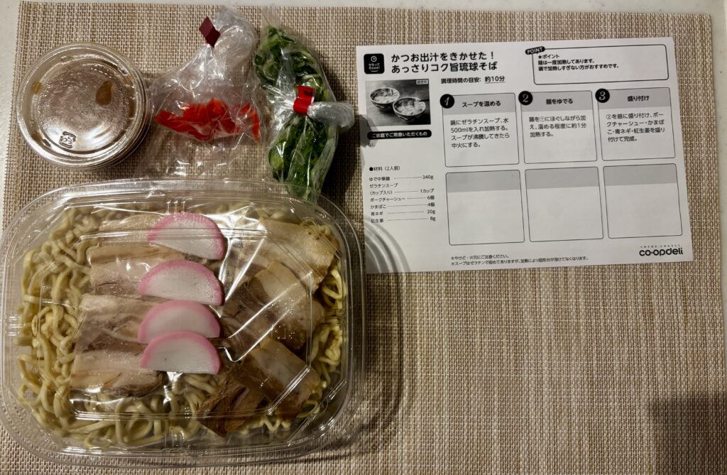 コープデリでは毎週様々な特集があり、今回はご当地特集で発見した琉球そばを食べてみました。