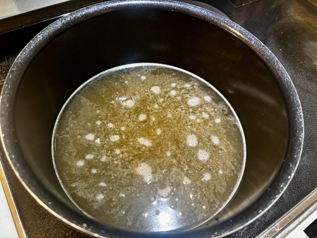 水500㎖とゼラチンスープを鍋に入れて加熱。