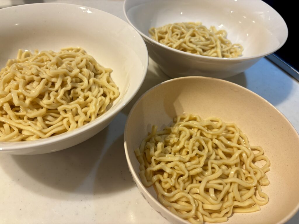 悩みました、麺好きが2人いるので3人で分けると少ないのでは……と。