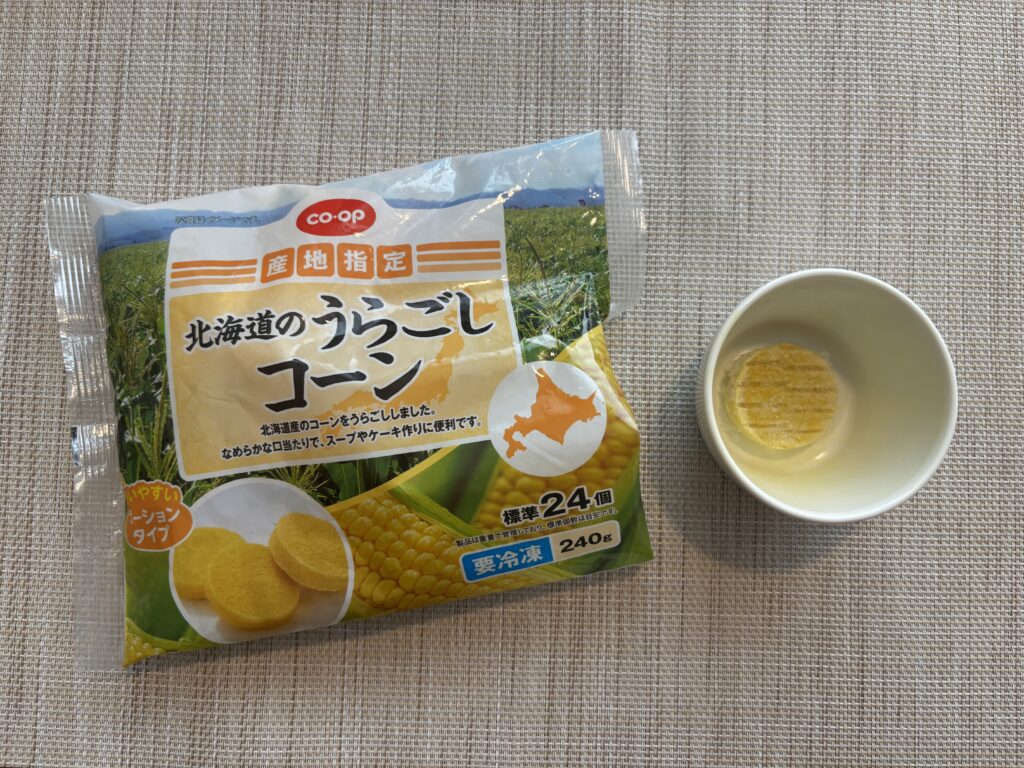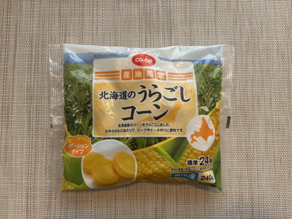 初期はクリームコーン缶を使うのが主流ですが、皮は入っているので裏ごしはしなければなりません……その手間を省いてくれたのがコープの『北海道のうらごしコーン』です。