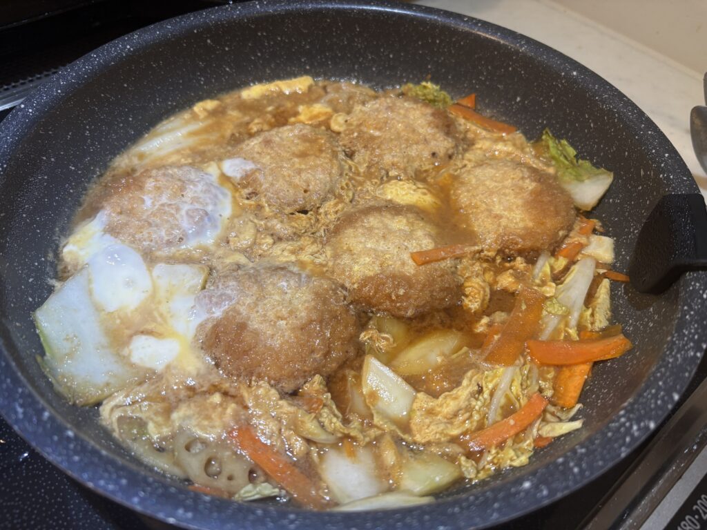 煮カツをいちから作ろうとなると、カツをあげてから野菜と煮るので莫大な時間がかかります。